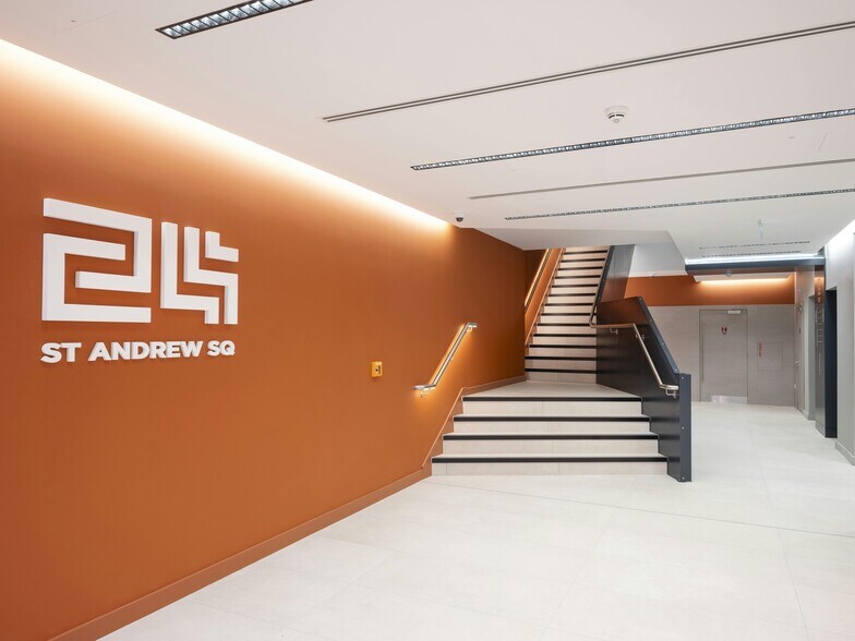 Le 24/25 St Andrew Square est une superbe propriété proposant des bureaux décloisonnés de haute qualité derrière une façade d'époque. L'accès se fait par une entrée bien en vue sur le côté nord de St Andrew Square et les automobilistes peuvent accéder au parking souterrain sécurisé de North St Andrew Lane, à l'arrière de l'établissement. L'hébergement disponible s'étend sur 48 047 pieds carrés répartis sur des plaques de sol ouvertes efficaces du sous-sol au 4e étage. L'établissement bénéficie d'un emplacement bien en vue sur le côté nord de St Andrew Square. Cet emplacement central permet d'accéder facilement à une gamme exceptionnelle de bars, cafés et restaurants, notamment Dishoom, Wahaca, The Refinery, Tattu, The Register Club et Franco Manca, et sera encore amélioré par l'achèvement imminent du développement du St James Centre. 24/25 St Andrew Square bénéficie d'excellentes liaisons de transport avec la gare routière de St Andrew Square située juste à côté et la gare de Waverley à 5 minutes à pied au sud. Un arrêt de tramway situé à moins de 100 mètres permet d'accéder à l'ouest d'Édimbourg et à l'aéroport international d'Édimbourg. La qualité de l'emplacement se reflète dans le profil des occupants des environs immédiats, notamment Aberdeen Standard Investments, Royal London, First Sentier Investors, Computershare et Rathbones.