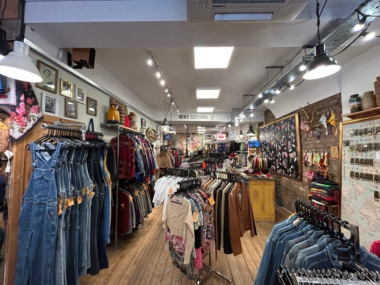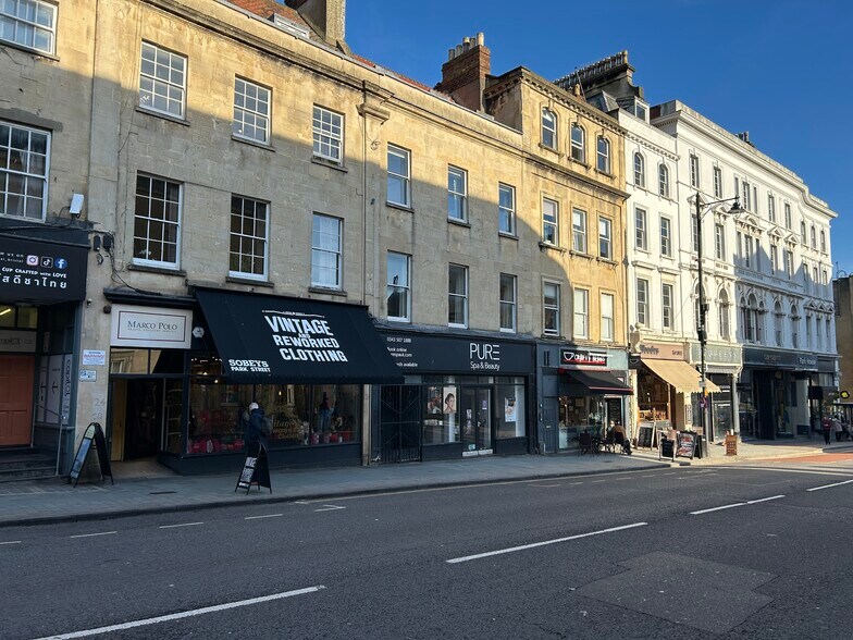 The property offers sales space to the front with rear changing room facilities. The ground floor carries wooden floorboards, a mix of exposed brick walls and painted plastered walls (some of which carry a wooden façade) and a painted plastered ceiling. The ground floor offers a mixture of lighting fittings to include pendants, spotlights and box lighting. The basement offers ample storage space and a single W.C. and carries painted brick and stone walls, stone flooring and has been fitted with strip lighting. Services include water, electricity and an air conditioning unit in the ground floor. The property occupies a prominent position fronting onto Park Street within a popular and established retail location.