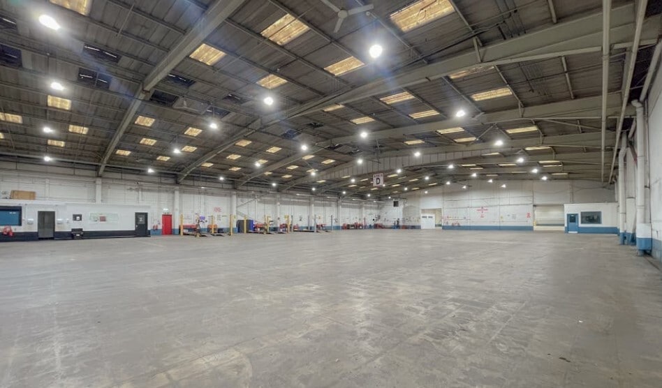 The premises comprise a substantial warehouse facility with flexible accommodation options, available as a whole or split into two wings. The building benefits from multiple loading doors, a generous rear yard of approximately 18,000 sq ft, and ample on-site parking, supporting high-volume operations. Internally, the unit features a clear open-plan layout with a maximum eaves height of 7.7 metres, complemented by robust infrastructure including 3-phase power, gas supply, LED lighting, and translucent roof panels for natural light. Ancillary office space at the front of the unit provides a functional base for administrative operations.