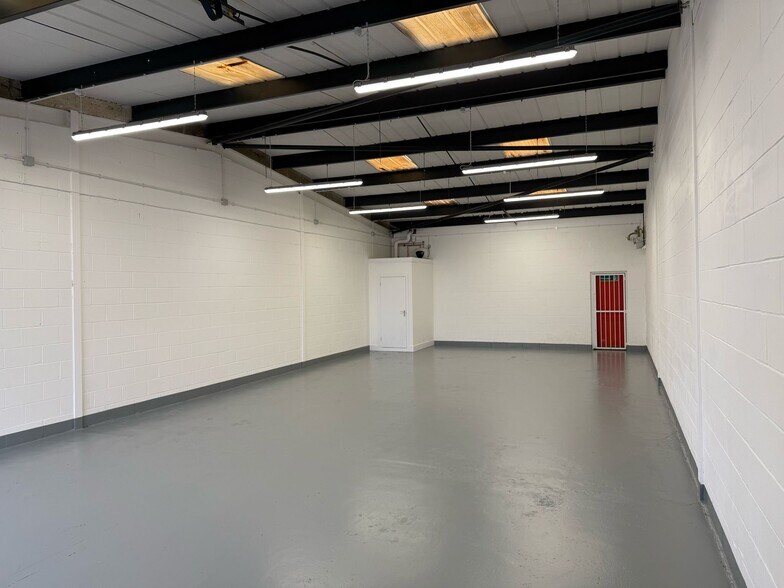 Les locaux comprennent une unité à mi-terrasse à ossature d'acier avec des murs en blocs sous un toit en pente avec façade vitrée. L'unité bénéficie d'une porte de chargement ascendante et de deux places de parking. L'unité a été entièrement rénovée.