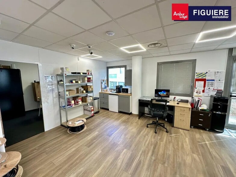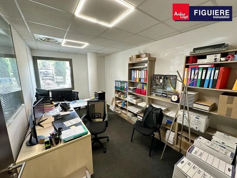 ARTHUR LOYD FIGUIERE IMMOBILIER - Découvrez à Aix-en-Provence ces bureaux à louer, alliant confort et modernité : climatisation réversible, moquette ou sol PVC en fonction des espaces, open space lumineux, salle de réunion, et vaste espace de stockage. Profitez de 6 places de parking privatives, et de sanitaires communs. Parfait pour optimiser votre activité professionnelle.