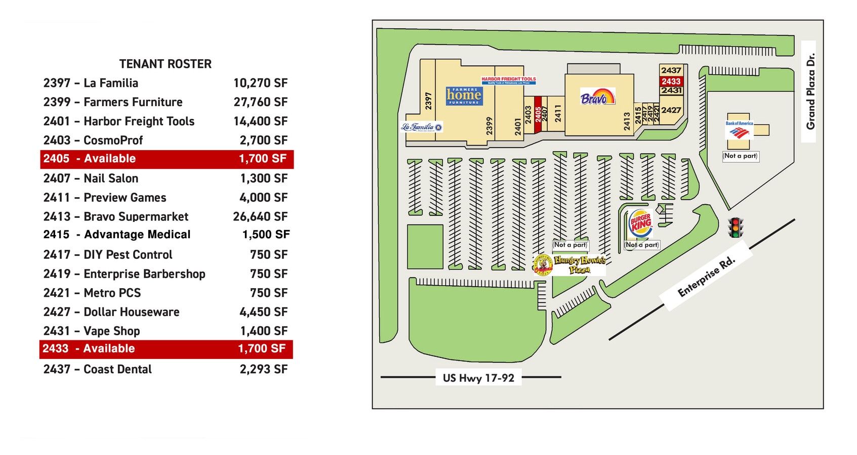 - Located on the corner of US 17-92 & Enterprise Road with excellent visibility on both roads and a signalized intersection on Enterprise Road