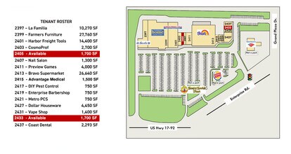 - Bravo Supermarket anchored neighborhood center with co-tenants such as Harbor Freight & Farmer’s Furniture