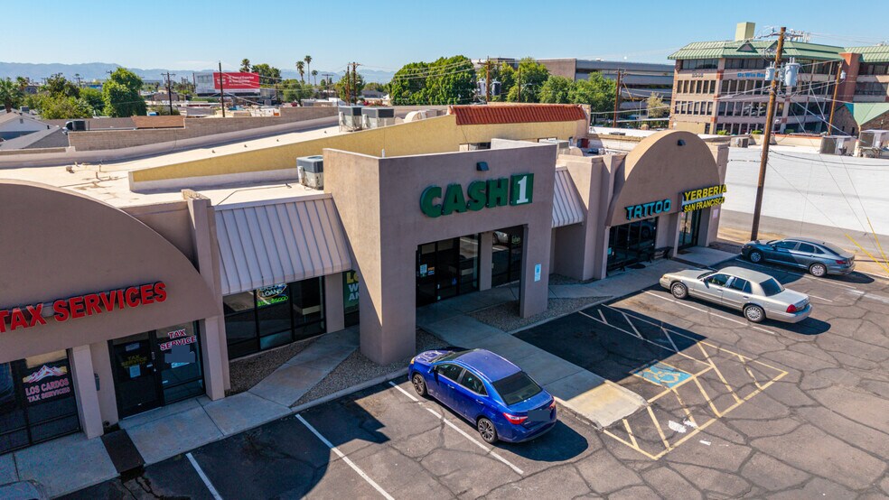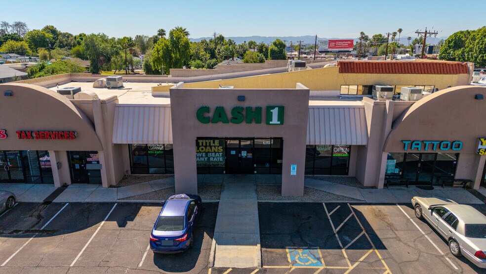 This former Cash 1 location offers 2,900 square feet of versatile space in excellent condition. The space features a generous customer lobby/reception area to welcome customers. A large, secure employee workspace sits behind the glass. The space also offers a private office, several storage rooms, two restrooms, and a break room, making it ideal for retail, office, or service-oriented businesses. The property benefits from strong visibility on Thomas Road with a large monument sign, just off the busy intersection of Thomas Road and 24th Street. The property is easily accessible, being minutes from the SR-51 and I-10.