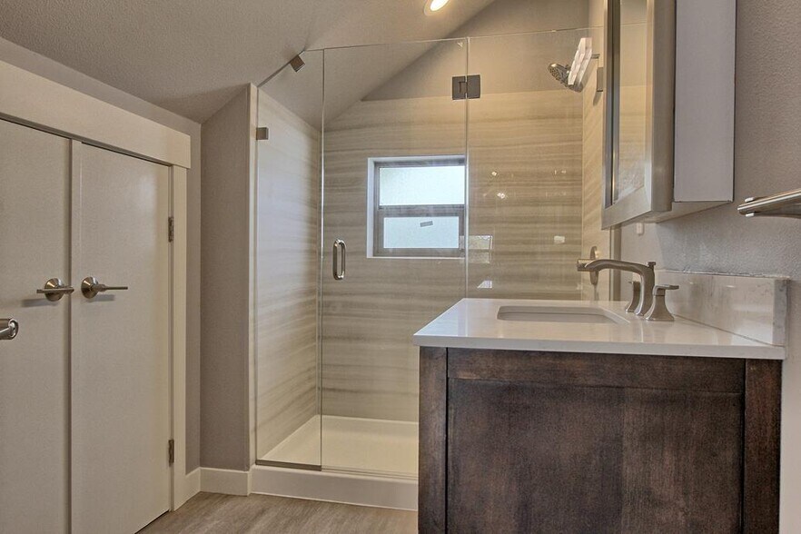 All of the units have been meticulously remodeled, nearly down to the studs, and now feature condo-quality finishes, including upgraded systems, new flooring, and designer kitchens and bathrooms. Kitchens boast modern cabinetry, stainless steel appliances, and quartz counters, while bathrooms feature custom tile work. Additional work included fire sprinklers throughout, upgraded electrical, a seismically retrofitted foundation, and installing a new upsized water meter.
