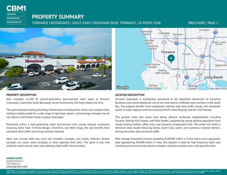 - Located at the signalized intersection of Crenshaw Blvd and Lomita Blvd with excellent visibility and access