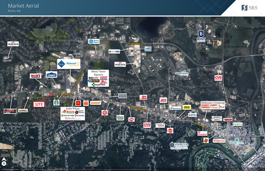 Un ancien restaurant de 3 000 pieds carrés et plus est disponible à la location sur 0,8 hectare situé sur la Shorter Avenue à Rome, à un carrefour de feux de signalisation avec une voie de virage réservée en face de Lowe's. Le site est un zonage commercial communautaire (C - C) permettant une variété d'utilisations commerciales. Shorter Avenue est une artère est-ouest à quatre voies indivise avec un trafic de 23 000 personnes. Le site est desservi par tous les services publics. Les détaillants à proximité incluent Lowe's, WalMart, Sam's Club, Starbucks, McDonalds, Del Taco, Burger King, Popeye's, Taco Bell, Advance Auto Parts, Dollar Tree, Zaxby's, Planet Fitness, Big Lots, Harbor Freight et Title Max. L'emplacement à l'ouest du centre-ville de Rome se trouve à 3 km de l'université Shorter (1 300 étudiants) et à 4 km du Berry College (2 200 étudiants). La population de 3 miles compte plus de 29 000 habitants avec un revenu familial moyen de plus de 68 000 dollars.