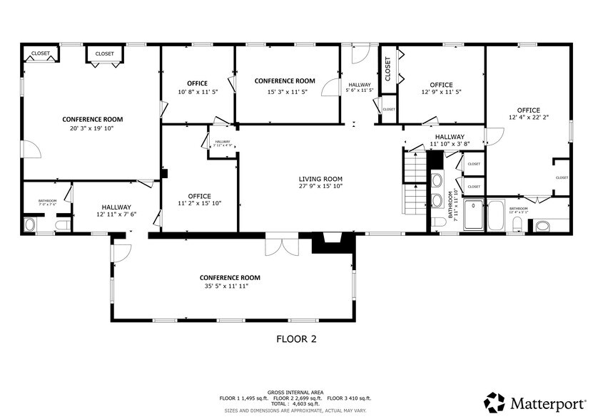 Professional space meets prime location in this impressive three-level office building in the sought-after Sandy Plains Executive Center. Offering over 4,600 square feet, this four-side brick property provides a versatile layout ideal for a variety of business needs. The main level features four private offices, four conference areas that can easily be converted into additional offices, and a stunning two-story conference room with a fireplace at the center of the space. This level also includes two full bathrooms and one half bathroom for added convenience. Upstairs, you will find two additional private offices and another full bathroom, providing excellent separation for executive or administrative use. The finished basement expands the functionality with a private office, two spacious flex rooms perfect for conference or training areas, an additional fireplace, and a half bathroom. An attached one-car garage and covered front porch add both practicality and curb appeal. Ideally situated just off high-traffic Sandy Plains Road, this property offers outstanding visibility and accessibility, surrounded by numerous businesses, shopping, and dining options—making it an exceptional opportunity for your business or investment portfolio. Owner pays all utilities except water, sewer, and trash, which are included in the quarterly association dues of $935.21. The sale includes the land and building only; equipment and business inventory are negotiable, and current tenant occupancy is negotiable as well.
