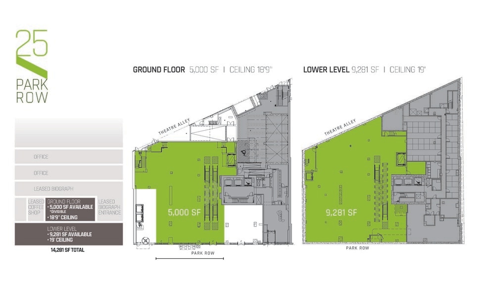 25 Park Row est une tour mixte de premier plan située à l'intersection de Park Row et Beekman Street, en plein cœur du centre-ville de Manhattan. Conçue par le cabinet d'architectes COOKFOX, la propriété allie un caractère architectural intemporel à une sophistication moderne, avec une façade élégante qui s'harmonise parfaitement avec les environs historiques de City Hall Park. La base de la tour propose un espace commercial de premier choix, doté de vitrines en verre expansives, de hauteurs sous plafond impressionnantes et d'une visibilité inégalée, directement en face de City Hall Park. Ce site bénéficie d'un trafic piétonnier intense, alimenté par la proximité des principaux hubs de transport, notamment Fulton Center, le World Trade Center et plusieurs lignes de métro, faisant de ce quartier l'un des plus connectés et dynamiques de New York. Entouré d'institutions culturelles emblématiques, de développements résidentiels haut de gamme et d'une population de bureaux en pleine croissance, 25 Park Row offre une opportunité unique pour les marques souhaitant établir une présence phare dans un quartier à la fois très fréquenté et chargé d'histoire.