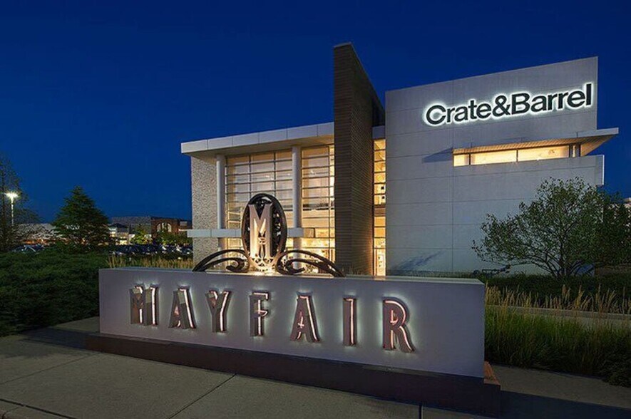 Mayfair features more than 130 of the hottest retail brands in the country, including the first Nordstrom and The Container Store locations in Wisconsin. With its award-winning architectural design and inviting atmosphere, this retail property is the centerpiece of an 86-acre business complex. Mayfair is located in the center of metropolitan Milwaukee's core of middle-to-upper-income neighborhoods and is the largest mixed-use shopping center in the state. The center is anchored by Macy's and Nordstrom and presents retailers such as Apple, Banana Republic, LEGO, Ticknors, Williams Sonoma, AMC Theatres, and a two-level Barnes & Noble. The outdoor streetscape is highlighted by Crate & Barrel and features key retailers and restaurants such as P.F. Chang's, Maggiano's Little Italy, and The Cheesecake Factory. Surrounding Mayfair in Wauwatosa is the Mayfair Professional Office Building and the Mayfair North Tower. Together, the buildings offer over 190,000 square feet of office space for lease.
