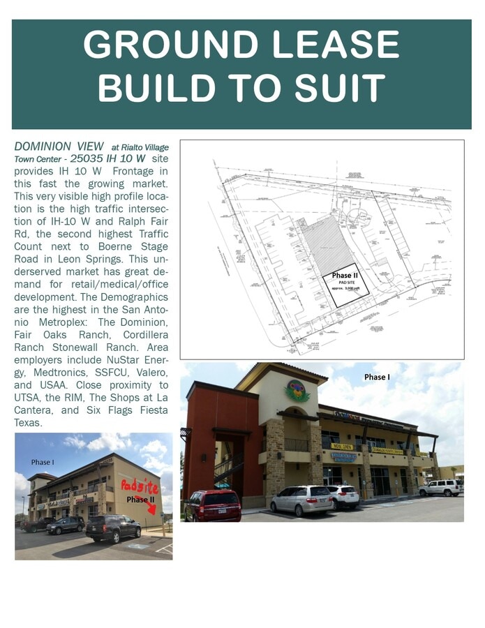 Dominion View at Rialto Village 25035 W IH-10 Espace disponible | 93–186 m² | Local commercial | San Antonio, TX 78257