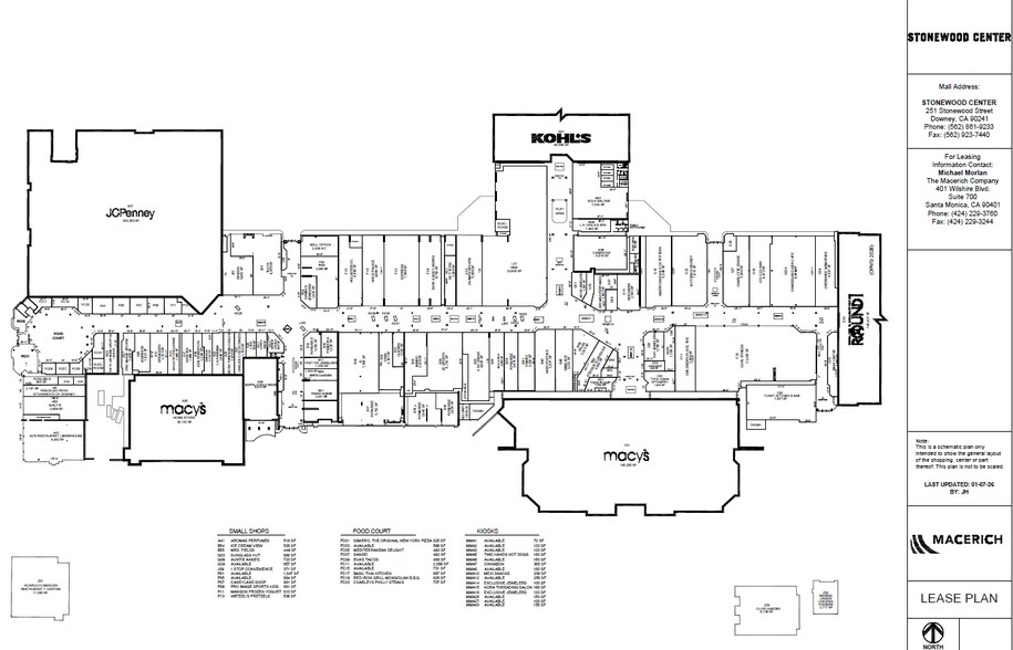 Stonewood Center in Downey, California, is the region’s premier shopping and dining destination, featuring some of the most popular retail brands like Macy’s, Macy’s Home, Kohl's, JCPenney, H&M, Pandora, Hollister, and Candeeland Kids, and great dining options like BJ’s Restaurant & Brewhouse, Acapulco's, Raising Cane's, Buffalo Wild Wings, Toast Kitchen and Bar and Olive Garden. Stonewood Center is an excellent stop for the entire family. Center is getting extensive aesthetic improvements.