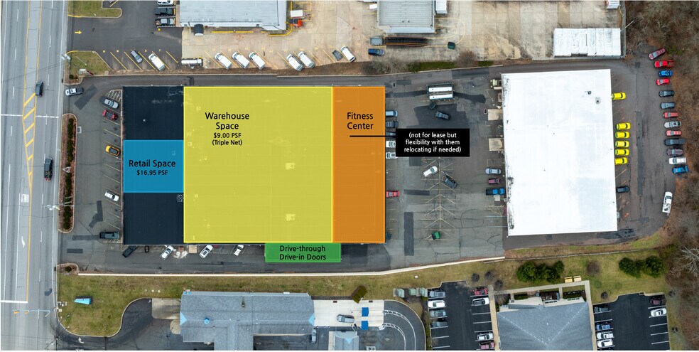 The warehouse component offers excellent accessibility at approximately a 25% discount to similar buildings in the market, making it a strong option for storage & warehousing. Right side with drive-in doors- - Two drive-in doors 10’ W x 12’ H - 10,000 SF with bumpout; bumpout is 1,100SF - so right side is a total 11,100sqft with 15 ft/13ft ceiling height - Has its own HVAC (AC and heat)