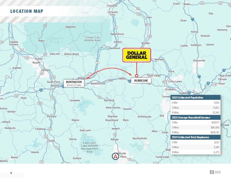 The subject property is located along Main St which averages 8,500 vehicles passing by daily. The asset benefits from nearby direct on/off ramp access to Interstate 64, a major thoroughfare that averages 30,800 VPD. The site is in surrounded by other national/credit tenants including Dairy Queen, Speedway, Exxon and many more. Strong tenant synergy increases consumer draw to the immediate trade area and promotes crossover store exposure to the site. The subject property is in close proximity to Hurricane Middle School (849 students), further increasing consumer traffic to the immediate trade area. The 5-mile trade area is supported by a population of over 25,000 and 6,000 employees. Residents within a 5-mile radius of the subject property boast an affluent average household income of $106,751.