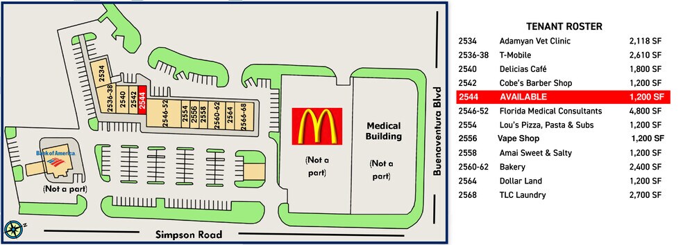 Buenaventura Lakes Shopping Center 2534 Simpson Rd Espace disponible | 111 m² | Local commercial | Kissimmee, FL 34744