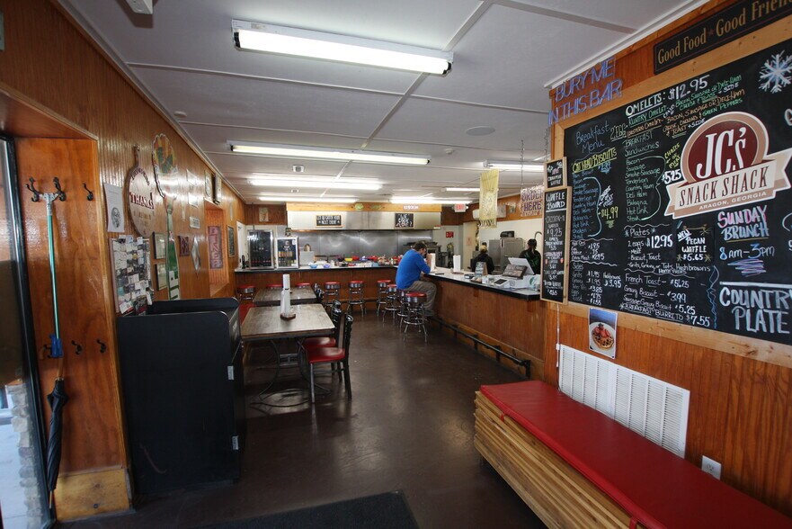 Restaurant building approximately 2009 SF. Metal warehouse with 4 rollup doors, approx. 3000 SF. Metal warehouse with approx. 7800 SF, Shed with flea market stations. This property is 2.42 acres and is great for retail and storage. It is centrally located in downtown Aragon. Great investment property. Restaurant is leased through October 31, 2026 for $500 per month.