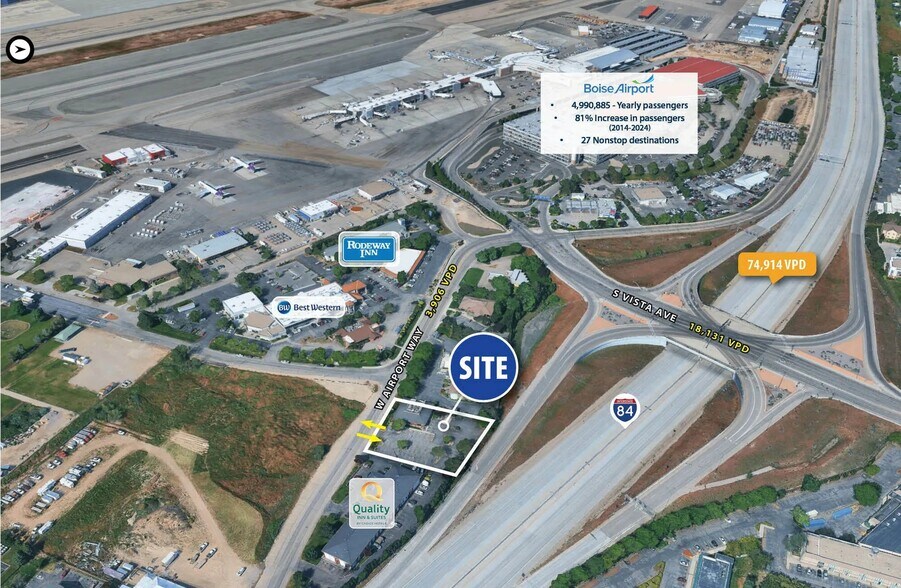 - Prime Location: Positioned directly on Airport Way, just steps from the Boise Airport with excellent visibility and traffic exposure.