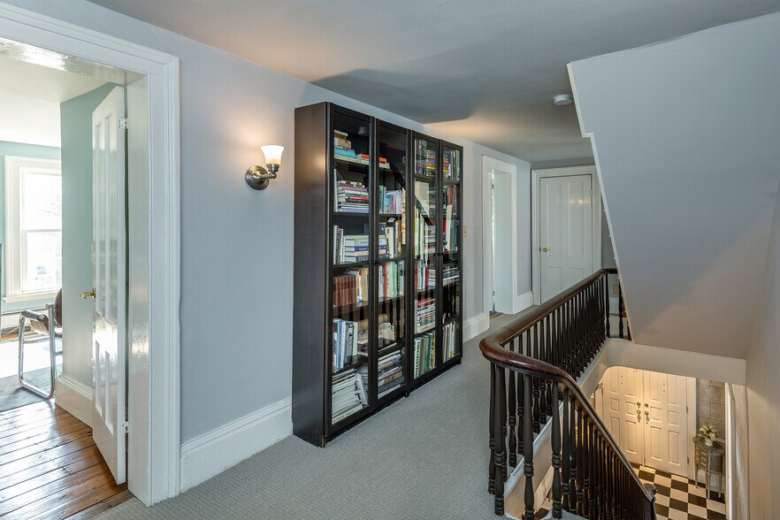 Beautifully maintained 4-bedroom, 4.5-bath historic home with flexible residential or retail potential. The main level features an eat-in kitchen with island and stainless steel appliances, a half bath, and access to a private side deck and professionally landscaped courtyard ideal for outdoor dining or entertaining. The front living room includes a fireplace and is complemented by two additional rooms suitable for offices, boutique retail, or living space. Upstairs, all four bedrooms include private en-suite bathrooms. Prime walkable location directly across from a bank and grocery store and steps from popular restaurants and shops.