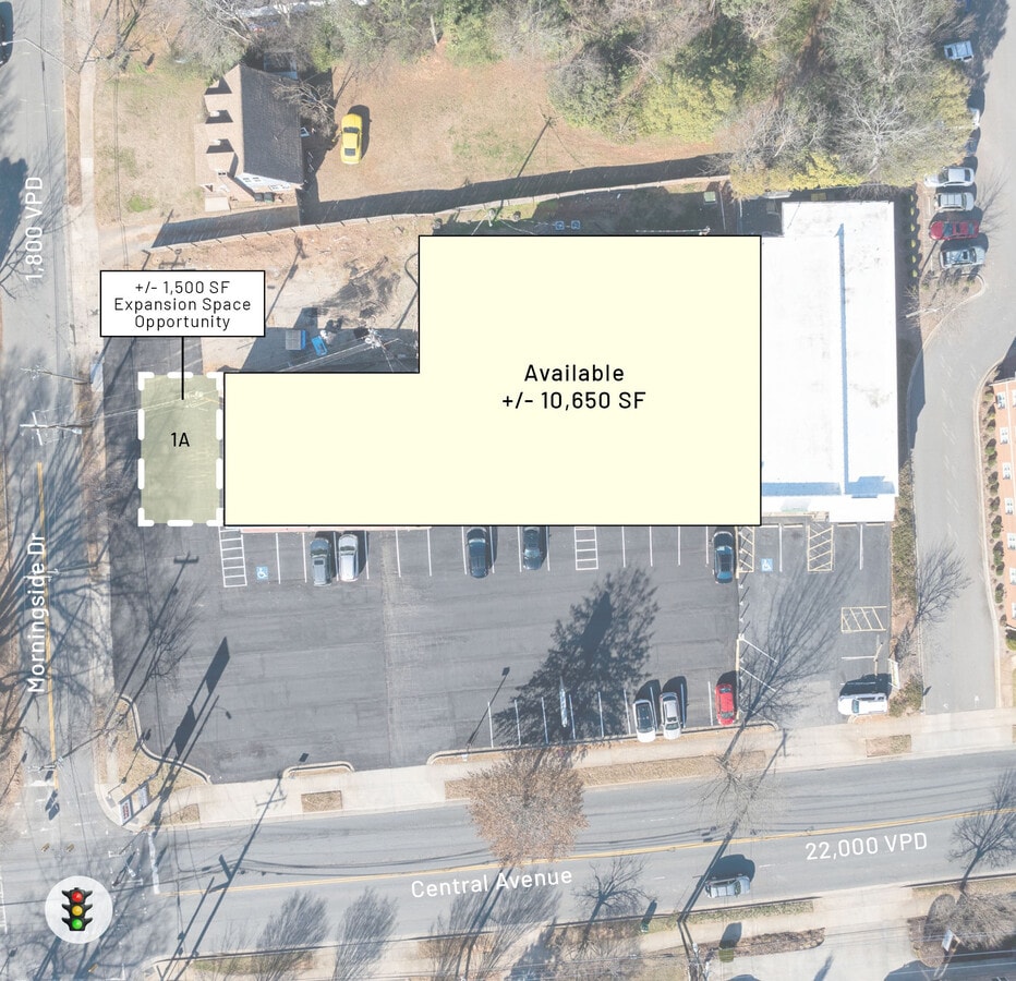 Fantastic opportunity to lease up to +/- 10,650 in the Plaza Midwood area! The location on Central Avenue has high visibility and accessibility with ample parking. With frontage on both Central Ave and Morningside Dr. The proximity to the Hwy 74 and the Gold Lightrail line is also a huge advantage, as it provides easy access for customers and employees alike. A great opportunity for a business looking to establish or expand its presence in the Plaza Midwood area.