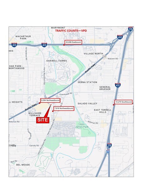 - Easy access to Forth Sam Houston and close proximity to Alamo Heights/Terrell Hills/Oakwell Farms neighborhoods