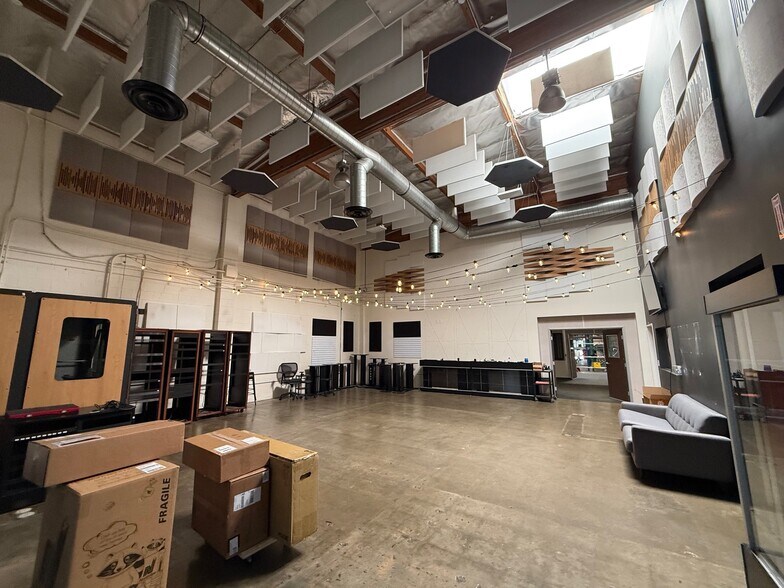 Free Standing 7,600 Sq. Ft. Fully Air-Conditioned Concrete Tilt-Up Industrial Building w/18' Clearance Height. Approximately 3,000 Sq. Ft. Rear Yard. 14' x 14' Ground Level Loading Door. 400 Amp Power Panel. High Bay LED Lighting. Approximately 2,200 Sq. Ft. of Office Area. Two Sound Studio Rooms. Available Feb. 1st. Gross Lease - No CAMs or NNNs. Tenant Pays Own Utilities.