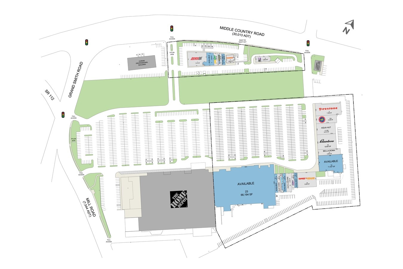 - Exceptional visibility along Middle Country Road (NY-25) with strong vehicle counts and prominent retail frontage.