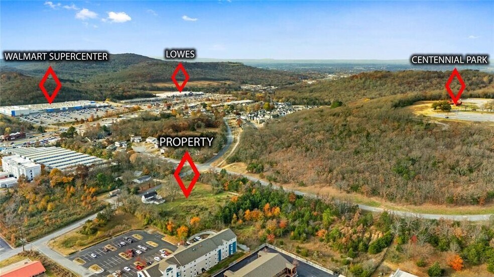 Prime 2-acre C2 development opportunity directly adjoining Centennial Mountain Bike Park, one of Fayetteville’s premier outdoor tourism destinations with 228+ acres of world-class cyclo-cross and mountain biking trails. Surrounded by rapid commercial expansion, including national-brand hotels, multifamily communities, restaurants, and self-storage, making it ideal for large-scale commercial growth. With immediate proximity to I-49 and positioned in one of Fayetteville’s fastest-growing corridors, this property is perfectly suited for hotel development, branded extended-stay concepts, multifamily housing, or mixed-use project capitalizing on strong year-round visitor traffic. Direct trail access creates a unique value proposition for hospitality and residential developers seeking to move to NWA’ outdoor recreation economy. Property includes a historic structure (“The Old Tharp Place,” circa 1844), offering optional restoration potential or integration into a creative development plan.
