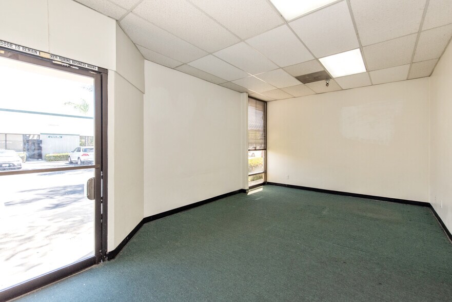 End unit with street frontage. Reception, 3 offices, large work area, restroom, storage and full height warehouse with 1 ground level truck door. Air conditioned.