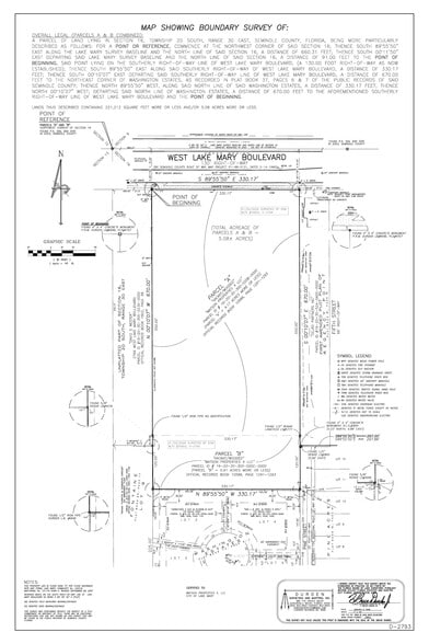 2695 West Lake Mary Blvd, Lake Mary, Floride 32746. Le site a une configuration rectangulaire et contient 221 214 pieds carrés, soit 5,08 acres. Le site a 330,17 pieds de façade le long du côté sud du boulevard Lake Mary et une profondeur de 670 pieds. Zone PO, bureau professionnel (nord 4,17 acres) et A-1, secteur agricole (sud 0,91 acre). Numéros de colis 16-20-30-300-020B-0000 et 16-20-30-300-020C-0000. Le propriétaire est un courtier immobilier agréé dans l'État de Floride. Pour plus d'informations, contactez Cathy Sopher (813) 508-4719 ou envoyez un e-mail à cathysopher@watsoncommercial.com.