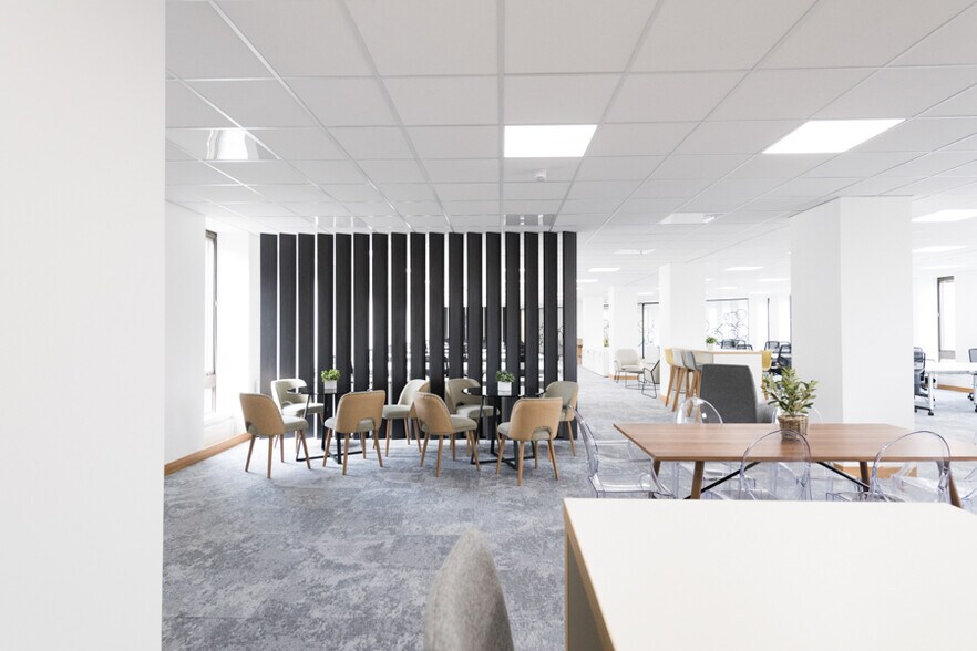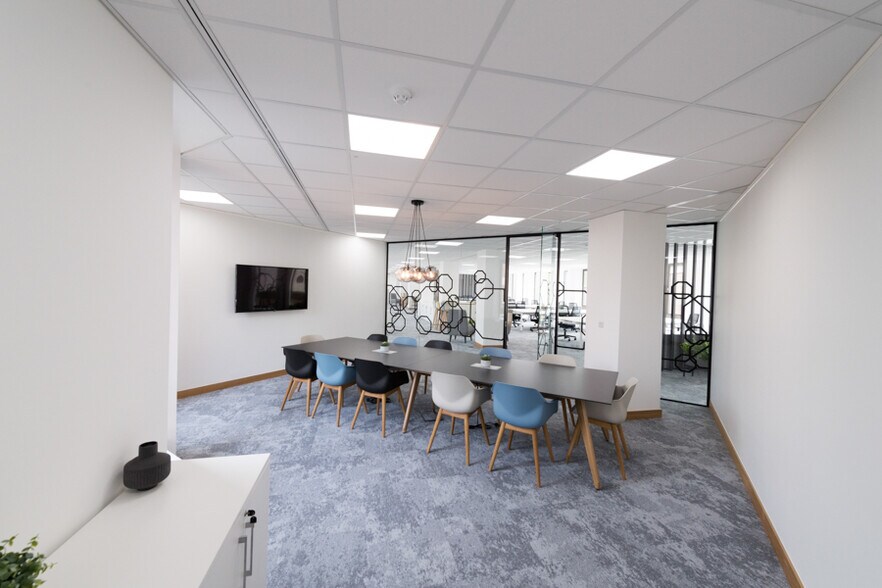 Suite B2 is situated on the ground floor of The Octagon and benefits from its own private / direct entrance, providing access into the office reception area. The accommodation is predominantly open plan and includes two meeting rooms a storage area, a kitchenette, and shared WC facilities. The suite is fitted with air conditioning, suspended ceilings with recessed lighting, raised access flooring, carpeted floors throughout and built-in storage cabinets. There are five allocated parking spaces located within the adjoining multi-storey car park. Note: The premises will be decorated and new LED lighting will be installed prior to lease commencement.