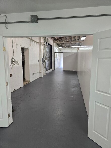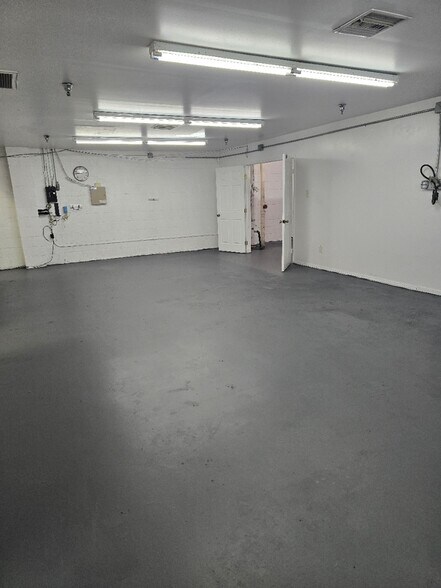 Warehouse with reception area, one (1) ground-level loading door, two (2) private offices, large open conference/bullpen area, two (2) restrooms, and two (2) fenced parking.