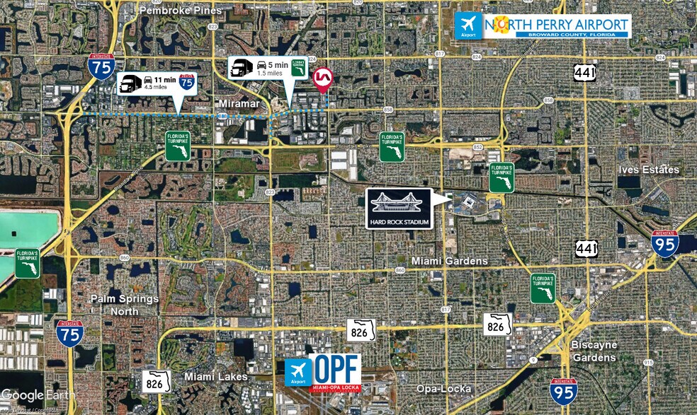 - Immediate access to I-75, Turnpike, and key commercial corridors, 26 min to Fort Lauderdale Int'l Airport & 32 min to Miami Int'l Airport