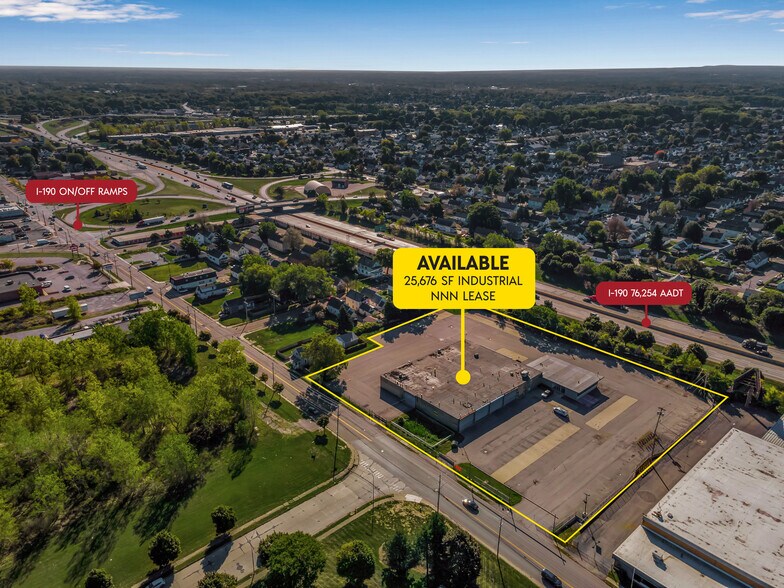 PRICE REDUCED! FOR LEASE BY OWNER Truck/vehicle maintenance facility, warehouse or distribution center with office 271 Dingens St Buffalo, NY (Directly off NYS-I190, Exit 1 @ NYS I-90) 21,516 SF warehouse - 4160 SF offices, remodeled in 2024. Six 14' overhead doors in maintenance area with 16' ceilings, radiant heat and floor drains, 3.5 acre fenced, paved lot, van level dock, air lines throughout, parts room, heavy power, waste oil storage and containment that feeds the waste oil heater for additional shop heat, monitored wet fire prevention system, pylon signage with Thruway visibility, direct access to NYS I-190 & NYS I-90, Erie County, City of Buffalo and bridges to Canada.