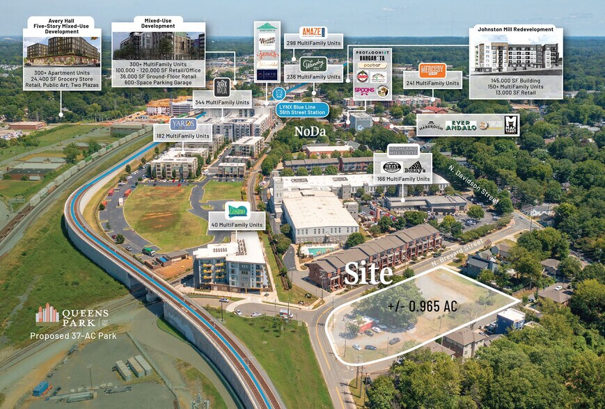 - Accessible à pied jusqu'à divers points d'intérêt, notamment la station de tramway LYNX de la 25e rue, le Cross Charlotte Trail et le futur Queens Park