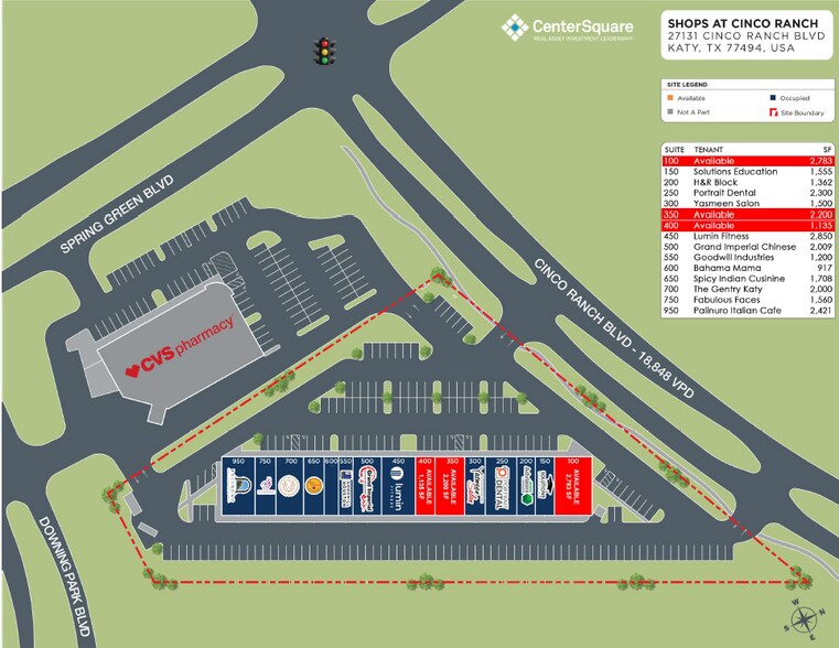 › Located at a signalized intersection at the corner of Cinco Ranch Blvd & Spring Green Blvd › Serves 36,000 homes over a 3-mile radius › One of the most affluent pockets in Houston MSA and consistently ranked as a top 5 neighborhood to live in America