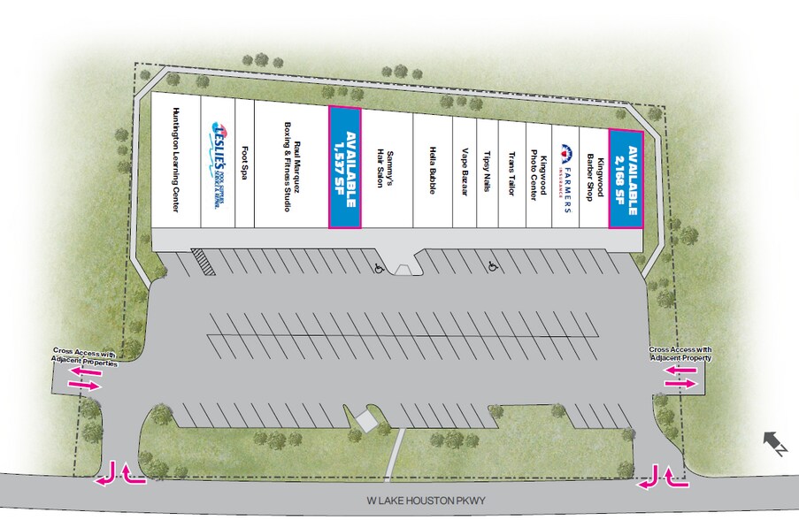 | Espace total disponible | 344 m² | Façade | W. Lake Houston Pky |