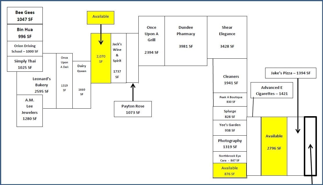 Jusqu'à 4 394 pieds carrés disponibles à la location au centre commercial Dunbrook, dans la banlieue nord de Northbrook. Le centre commercial à locataires multiples est situé à l'angle nord-est de Dundee Rd. et Pfingsten Rd. avec une visibilité et une exposition d'environ 38 400 VPD. Le centre est situé à moins d'un kilomètre au sud de Lake Cook Road, une artère principale est/ouest donnant accès à la fois à l'Interstate 294 (I-294) et à l'Interstate 90 (I-90). Possibilité de rejoindre des colocataires : Dairy Queen, Once Upon a Grill, Leonard's Bakery et Dundee Pharmacy, entre autres.