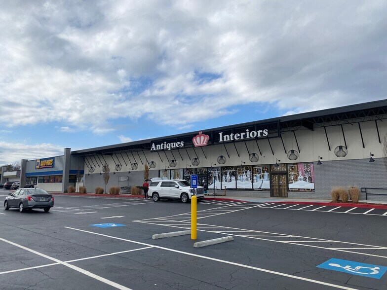 - Les principaux locataires du centre incluent Queen of Hearts Antiques et Napa Auto Parts.