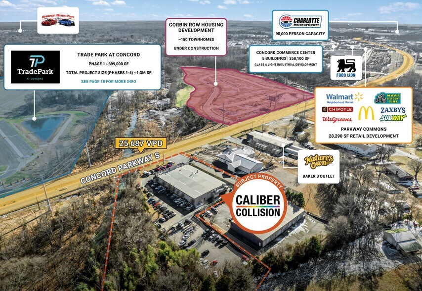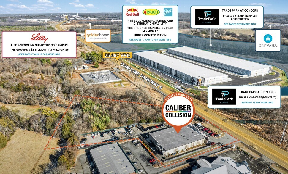 The property is strategically located along the highly trafficked Concord Parkway with excellent ingress/egress and visibility, supporting long-term operational viability. The site is further enhanced by continued residential, mixed-use, and industrial development in the immediate trade area, to include Eli Lilly's $2B campus and Red Bull's new $1.7B beverage manufacturing and distribution facility.