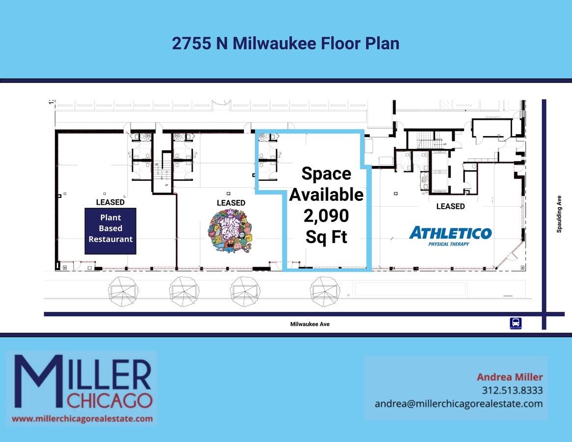 Positioned at the vibrant intersection of Diversey and Milwaukee in Chicago’s Logan Square, 2763 N Milwaukee Ave offers a prime retail opportunity in one of the city’s most dynamic neighborhoods. This newly constructed brick building, completed in 2018, features a high-visibility storefront with expansive windows that maximize exposure to the heavy foot traffic and daily vehicle flow along Milwaukee Avenue. The space is ideally suited for restaurant or retail use, already outfitted with furniture and equipment, allowing for a seamless transition for operators ready to launch. The property benefits from its location directly across from the Gap Outlet and proximity to the CTA Blue Line Logan Square station, enhancing accessibility for both customers and employees. With a ceiling height of 11 feet and a modern façade, the space delivers a contemporary aesthetic that complements the surrounding retail corridor. The neighborhood’s dense residential population and eclectic mix of businesses create a strong customer base and vibrant community atmosphere. This net lease offering includes estimated CAM charges of $6.25/SF and annual taxes of approximately $5,000. Tenants are responsible for utilities and property-related expenses, including air conditioning, electric, heat, and real estate taxes. The property is brokered by Adriana Correa of Stellar Pref. The Re Clinic, with co-listing support from Cesar A Pedroza.