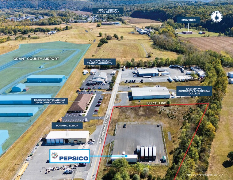 Cushman & Wakefield, Inc. and Century Realty, LLC are pleased to offer for sale a 950 SF industrial building in Petersburg, WV leased to Bottling Group, LLC, a subsidiary of PepsiCo, Inc.. The original 10 year lease to Bottling Group commenced April 1, 2024 and has an 8 year 3 month remaining lease term. Petersburg is located in the Potomac Highlands region which is in the eastern panhandle of West Virginia. The region’s economy has a diverse mix of defense research and manufacturing, wood products manufacturing, food production, and tourism.