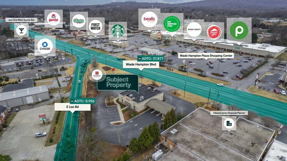 Synovus Bank 2800 Wade Hampton Blvd Local commercial 245 m² À vendre Taylors, SC 29687 1 921 799 € (7 835,63 €/m²) Taux de capitalisation 5,75 %