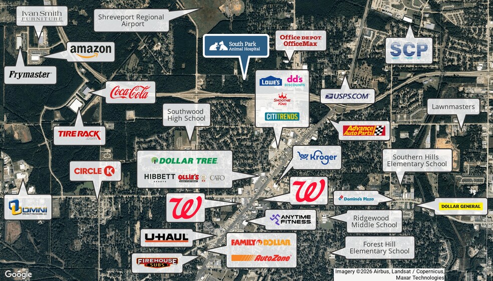 - The property is positioned in the Shreveport market, where surrounding residential density supports steady consumer demand for neighborhood veterinary