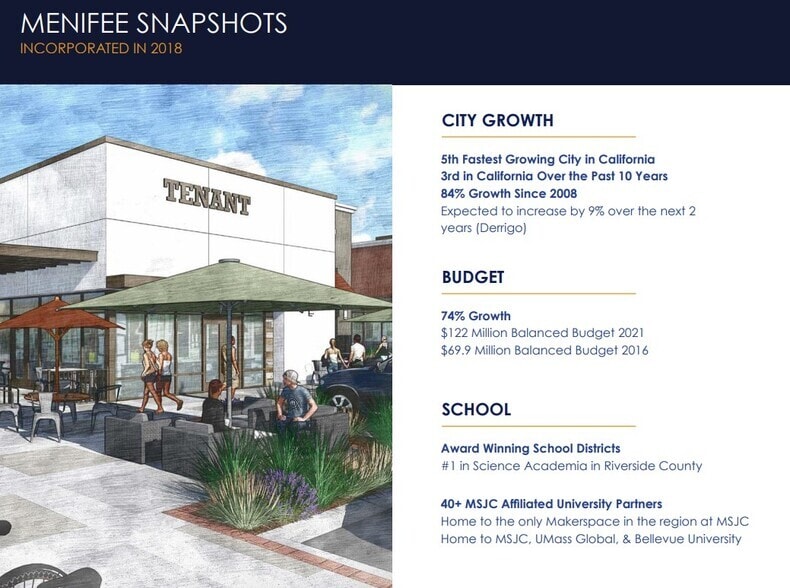Menifee Boardwalk 28995 Newport Rd Espace disponible | 111–1 301 m² | Local commercial | Menifee, CA 92584