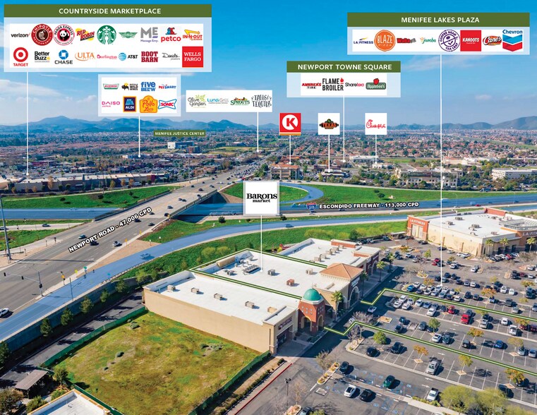 - Daily-needs anchor with recession-resistant traffic, strategically positioned in Menifee’s primary retail corridor and surrounded by expanding housing