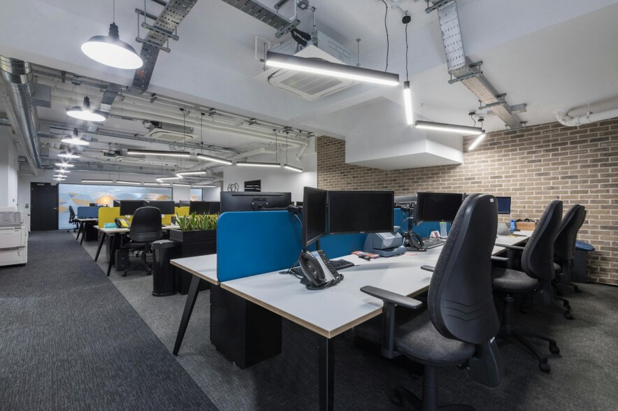This self-contained unit totals approximately 6,000 sq ft which is currently being used as office accommodation. There is a reception area in the ground floor entrance with the benefit of a lift to the lower ground floor. The space is mainly on the lower ground floor but does benefit from natural light from the demised courtyard and some additional roof lights. There are two large open working areas as well as private meeting rooms/offices. There is also a large modem fully fitted kitchen, fitted cinema and courtyard. The space has a ceiling height of 3.2m and benefits from plenty of natural light from the courtyard and skylights Quoting rental £179,500 per annum