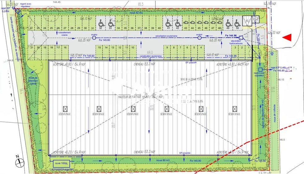 Le bâtiment est implanté dans la ZAC de l’Orme à Viarmes, au sein d’un environnement professionnel dynamique. Il s’agit d’un ensemble éco-responsable doté d’une toiture isolée avec panneaux photovoltaïques. L’accès est optimal grâce à la proximité des axes routiers D922, D301/RN1 et N104, ainsi qu’à la gare SNCF de Viarmes (ligne H) située à 5 minutes. L’aéroport Paris-Charles-de-Gaulle est accessible en 20 minutes. Le site est clos, paysagé et sécurisé, avec des emplacements PMR et des bornes de recharge électrique.