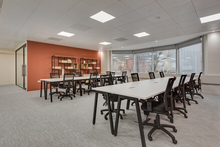 9,750 sq ft CAT A: £89,800 pcm {5,000 sq ft: £46,000 pcm} {4,750 sq ft: £43,800 pcm} Romulus has comprehensively repositioned the building ,which now offers a large reception space, incorporating a new café, new cycle storage and changing facilities. There is a range of availability ranging from small suites available on a fitted out basis to whole refurbished floors.