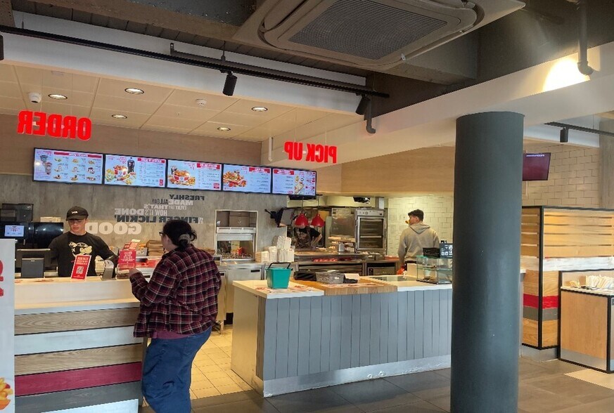 The subjects comprise a fully fitted Class 3 Restaurant corner unit, located within Princes Mall, East Kilbride. Internally, the unit has undergone substantial investment, resulting in a well-designed and spacious interior. The open floor plan allows for flexible usage, accommodating both tabled seating and booth seating areas. The unit also includes dedicated counters for serving customers. Additionally, there are food preparation stations and refrigeration units located towards the rear. Male and female W/C are also provided. The subjects benefit from dual frontage and access from both within the mall itself and via Olympia Way