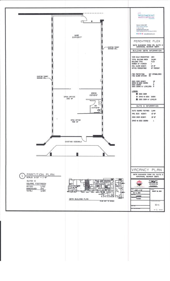 Le parc commercial Peachtree Corners est un projet flexible de huit bâtiments d'un étage, à baie peu profonde, situé sur 12,93 acres. Situé dans le sous-marché dynamique de Peachtree Corners à Atlanta, plaque tournante de l'innovation technologique d'Atlanta au cours des trente dernières années. La propriété comprend environ 158 740 pieds carrés louables et environ 475 places de stationnement sur le site de 12,93 acres. La propriété bénéficie d'un accès immédiat vers et depuis le boulevard industriel Peachtree et à moins de huit kilomètres de l'I-285, ce qui la rend idéale pour les locataires à la recherche d'un emplacement rentable et pratique pour Atlanta. Le Peachtree Corners Flex Center offre aux entreprises la possibilité de définir leur culture d'entreprise en utilisant des plaques de sol efficaces, des hauteurs de plafond élevées, une lumière naturelle abondante et des plafonds apparents dans un plan d'étage ouvert attrayant. Concevez un espace de travail pouvant accueillir une start-up de 2 500 pieds carrés ou un lieu de travail moderne de 10 880 pieds carrés.